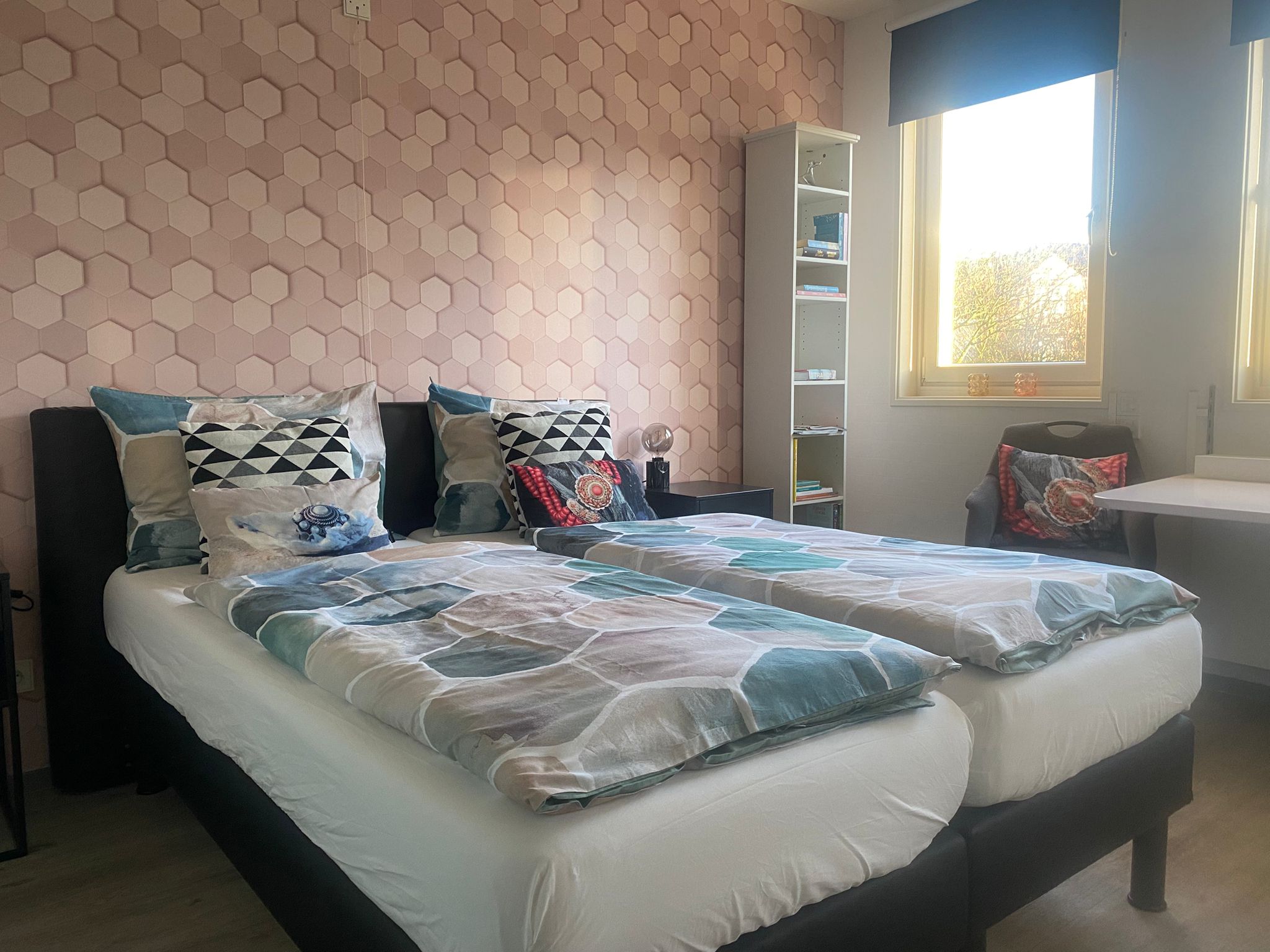 Wir vermieten zwei geräumige Doppelzimmer (mit Einzelbetten). Beide Zimmer verfügen über einen Flachbildfernseher und ein eigenes, geräumiges Badezimmer mit Toilette, Dusche, klappbarem Duschsitz, Doppelwaschbecken, Haartrockner und verschiedenen Toilettenartikeln. Darüber hinaus verfügen die Zimmer über eine Küchenzeile mit Kühlschrank mit Gefrierfach, Kombi-Mikrowelle, Wasserkocher, Krups Dolce Gusto-Gerät und Spüle. Bettwäsche und Handtücher sind inklusive.